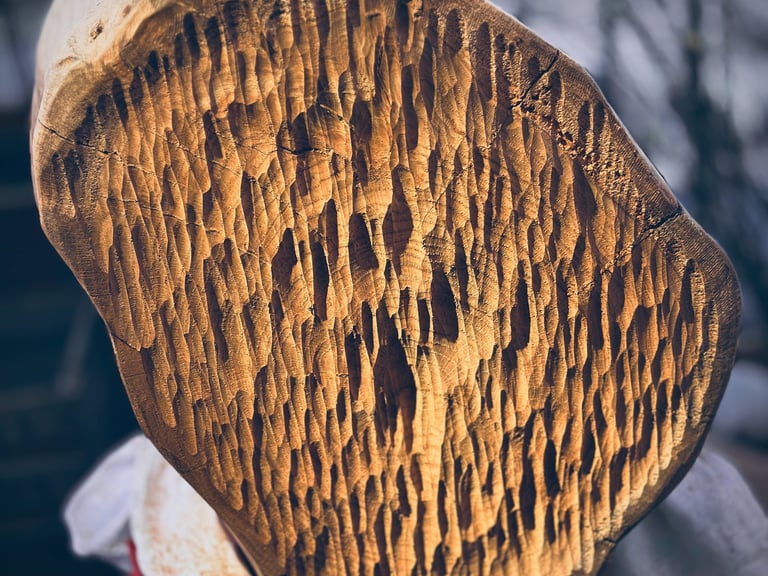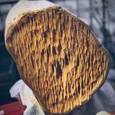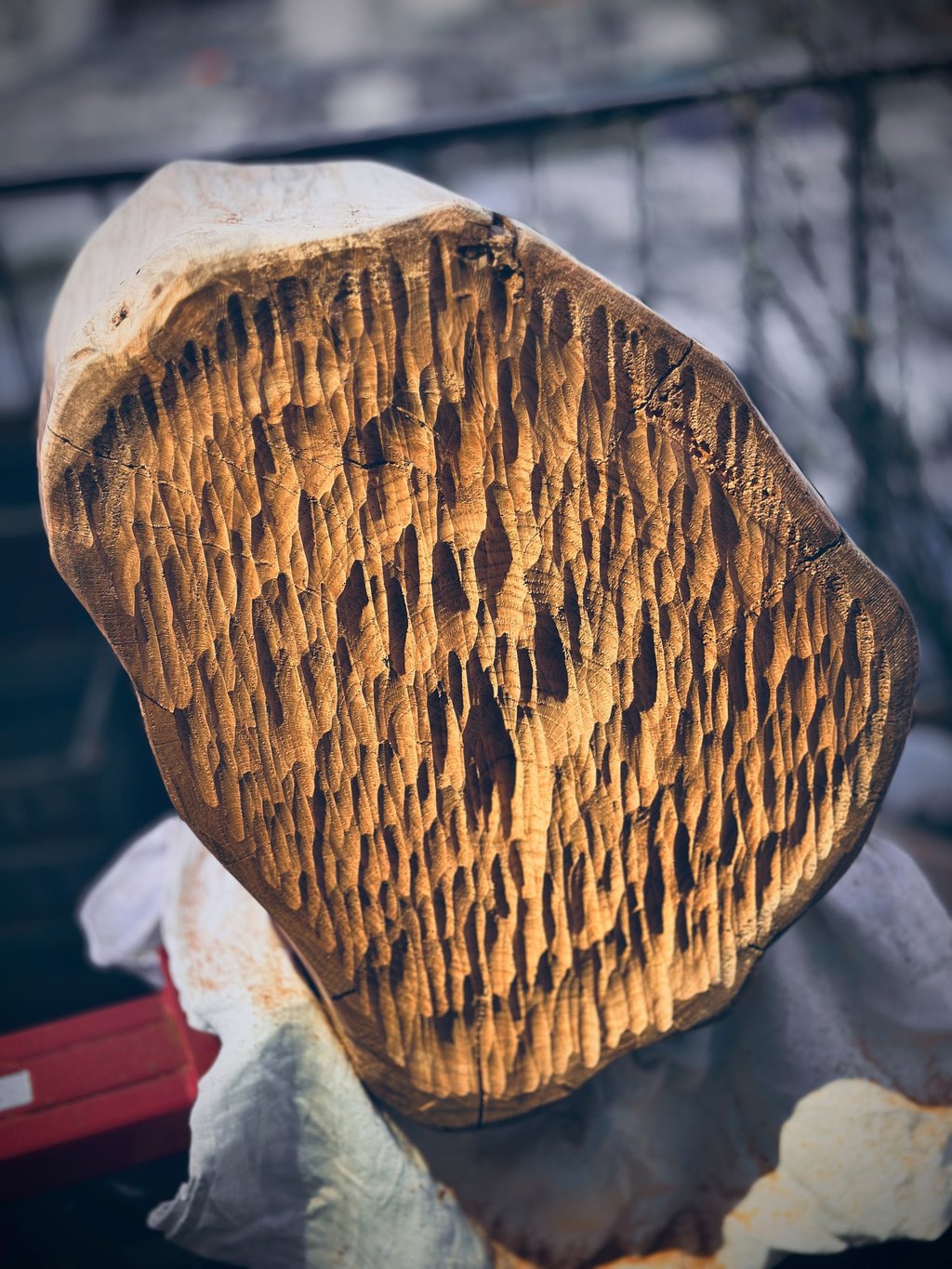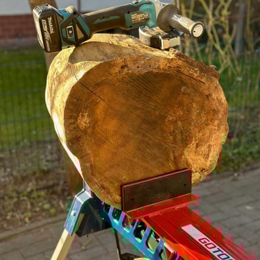 Palaber palaber - im wald gefunden, mit dem lastenrad nach hause geholt, ewig unterm tisch gehabt, immerdrüber nachgedacht - dann mal zu weihnachten schnitzmesser gescheknt bekommen, und damit verzweifelt versucht die rinde anzukriegen, dann immer mehr in Werkzeuge und technik investiert.
